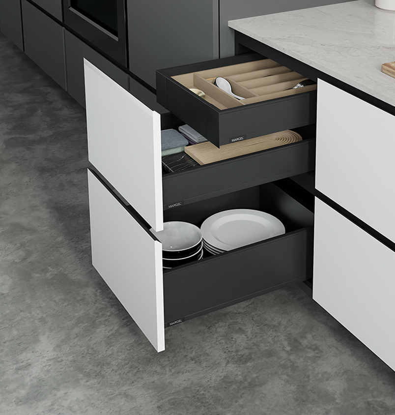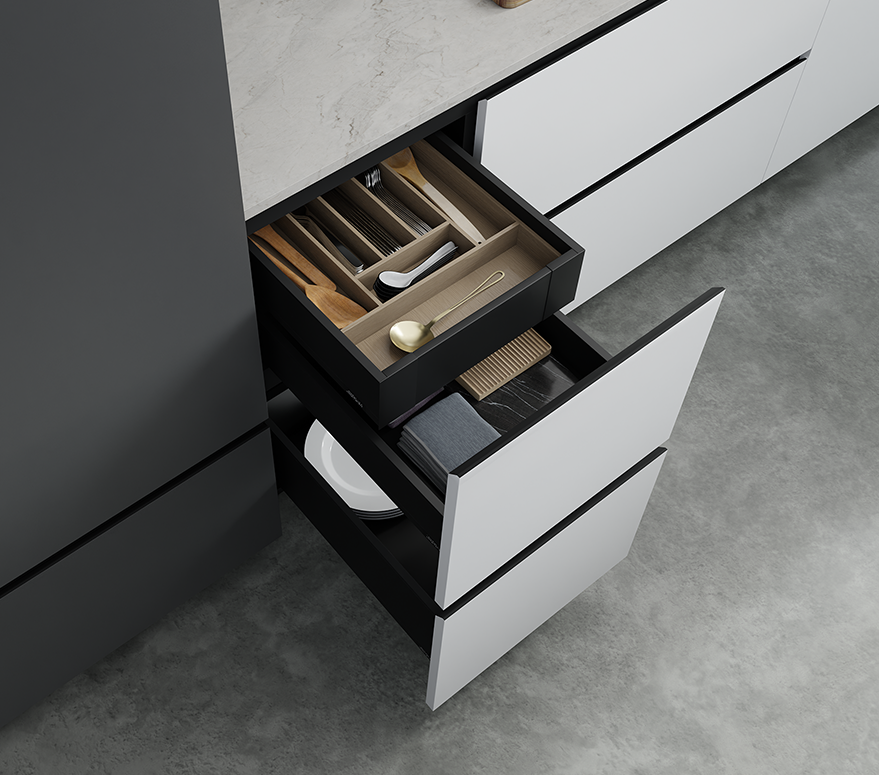 Flow is about more than looks. It’s about how cabinetry feels in daily use. The softened J-groove adds comfort without compromise, making it ideal for clean-lined spaces where functionality and style move in sync. It’s modern design made personal.