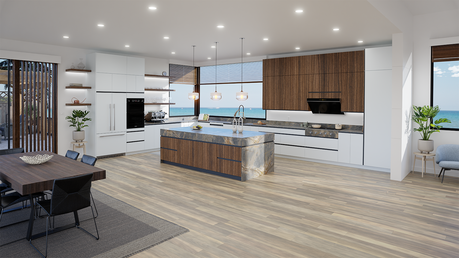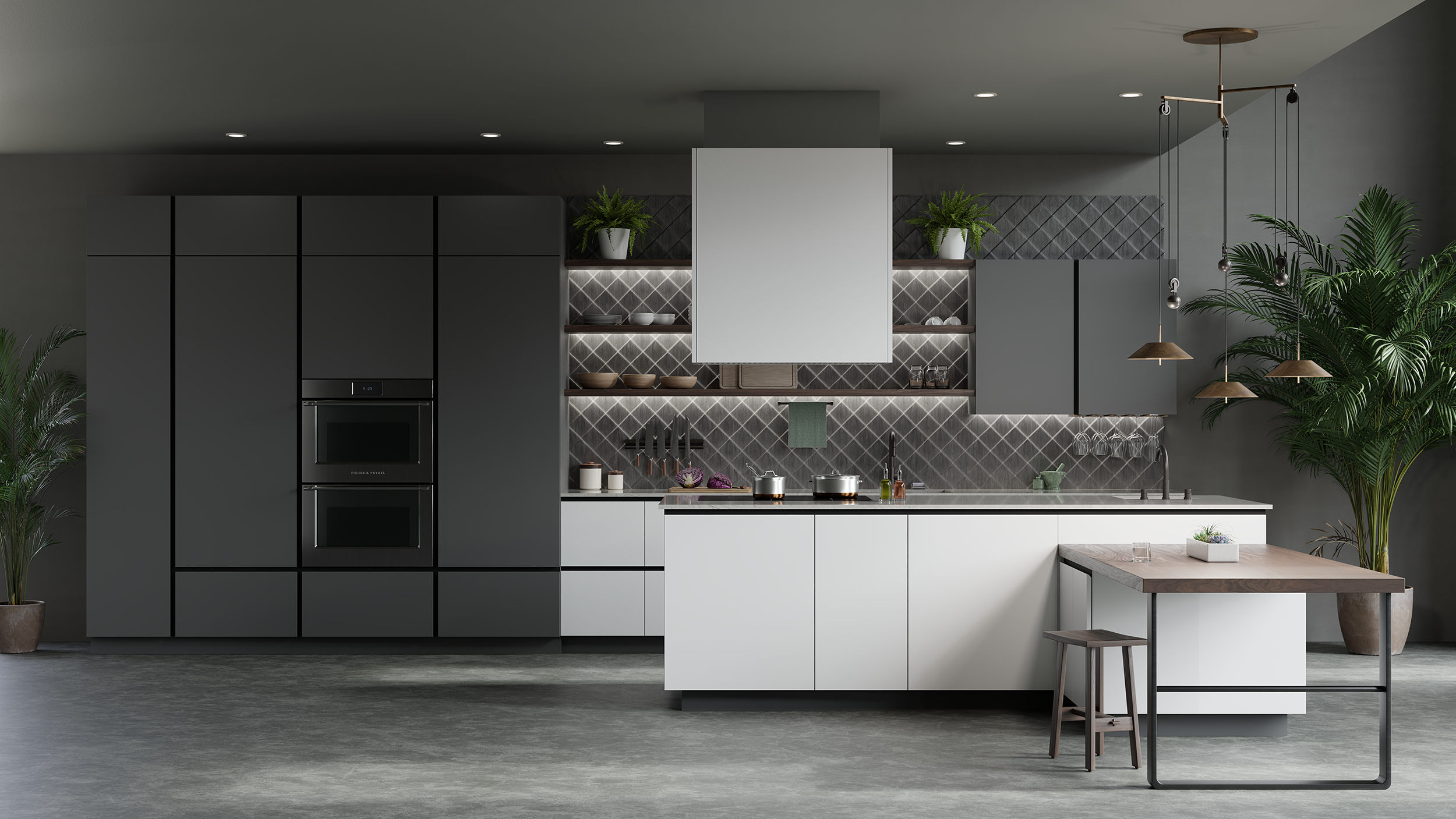 Redefining the modern kitchen with knife-edge precision and effortless elegance. Crisp bevels and bold geometry transform flat panels into a balance of style and warmth, creating a space that feels both striking and inviting.
